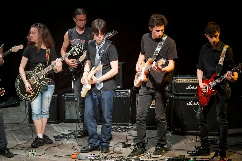 Personalmente credo molto nel progetto (magari sembra scontrato ma a me e a molti amici capita di lavorare per progetti in cui si crede poco o per nulla) e soprattutto continuo a credere nel valore della musica d’insieme, un obiettivo comune da raggiungere costruendo il suono insieme all’altro. Ci credono anche i ragazzi, altrimenti le band di istituto si sarebbero estinte; ecco, noi vogliamo essere un’alternativa alla fantastica dinamica del gruppo/band tradizionale di 4/5 elementi dando l’occasione a chiunque abbia un minimo di buona volontà di partecipare ad un gruppo di più di 30 elementi con strumenti di qualsiasi tipo. Non si fanno distinzioni tra i generi, la chitarra elettrica ha la stessa dignità del violino classico, così come i Queen vengono affrontati con la stessa serietà di Pergolesi.